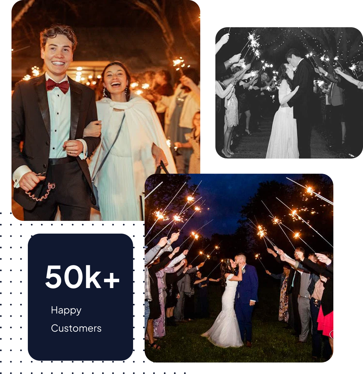 At Wedding Sparklers Now, we believe that life’s biggest moments deserve a little extra magic. Since our beginning, we've been dedicated to helping couples and event planners create unforgettable memories with premium-quality sparklers that shine as bright as the love they celebrate.